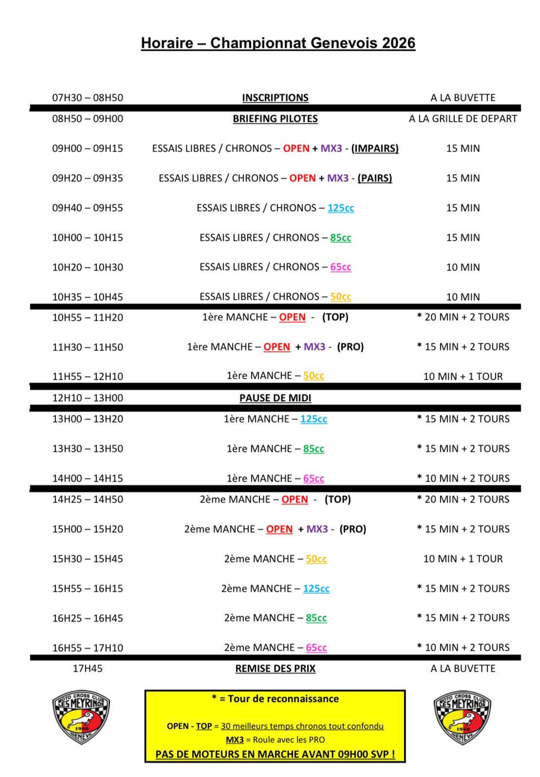 Le MCC Les Meyrinos organise sa 2eme manche du Championnat Genevois de motocross dans des conditions idéales avec :